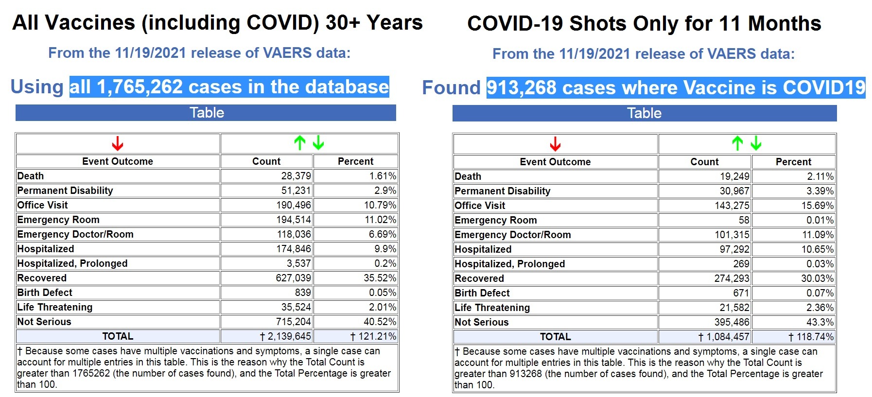 Vaccine Cult Exposed by Government’s Own Data: More than 50% of ALL Vaccine Adverse Reactions Reported for Past 30+ Years Have Occurred in Past 11 Months Following COVID-19 Shots